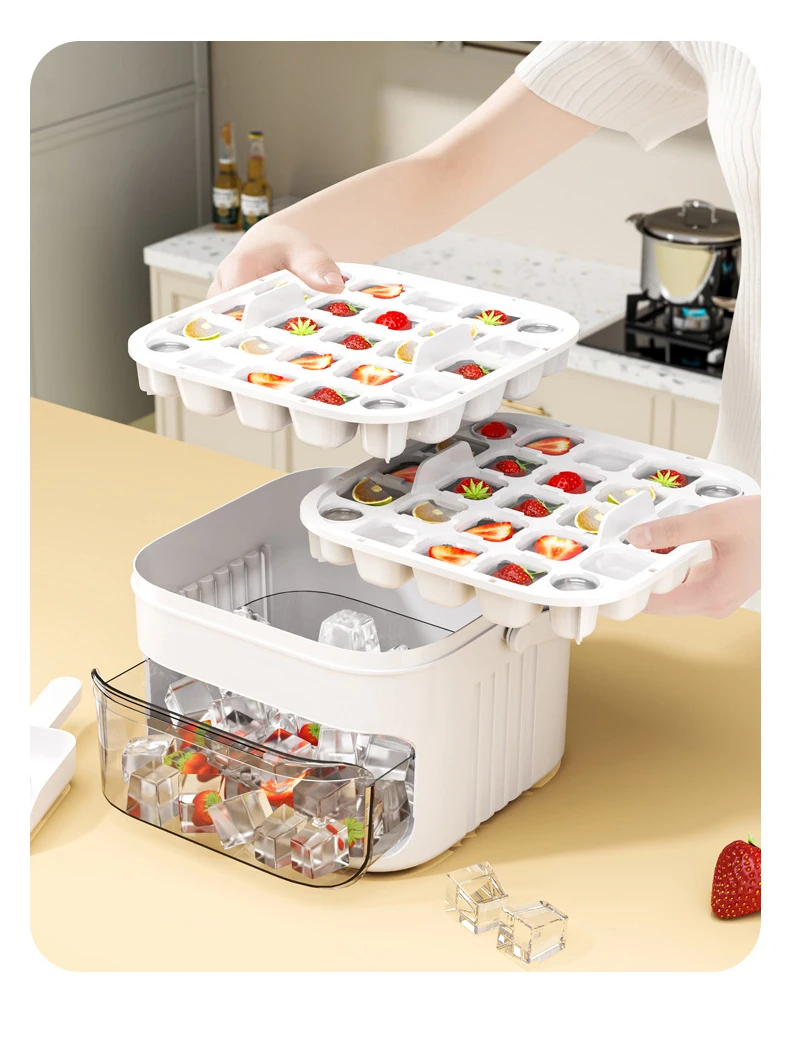 Press Ice Tray Ice Cube Mold Ice Box Ice Making Tool Large Capacity Ice Storage Ice Maker